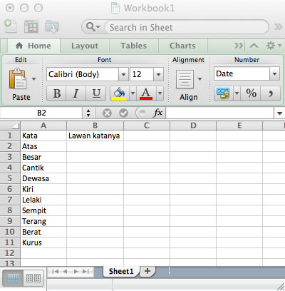 Ok. Selesai. Sekarang mari kita coba. Tampilkan kembali Sheet1, lalu ketik rumus berikut ini pada sel B2.